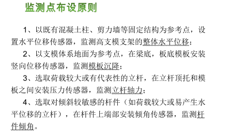 高支模監(jiān)測是采用高新技術(shù)手段從監(jiān)控層面進行的安全控制和事故防范,對高大支模體系進行監(jiān)測,為動態(tài)設(shè)計、信息化施工提供依據(jù),從而降低施工安全風險。