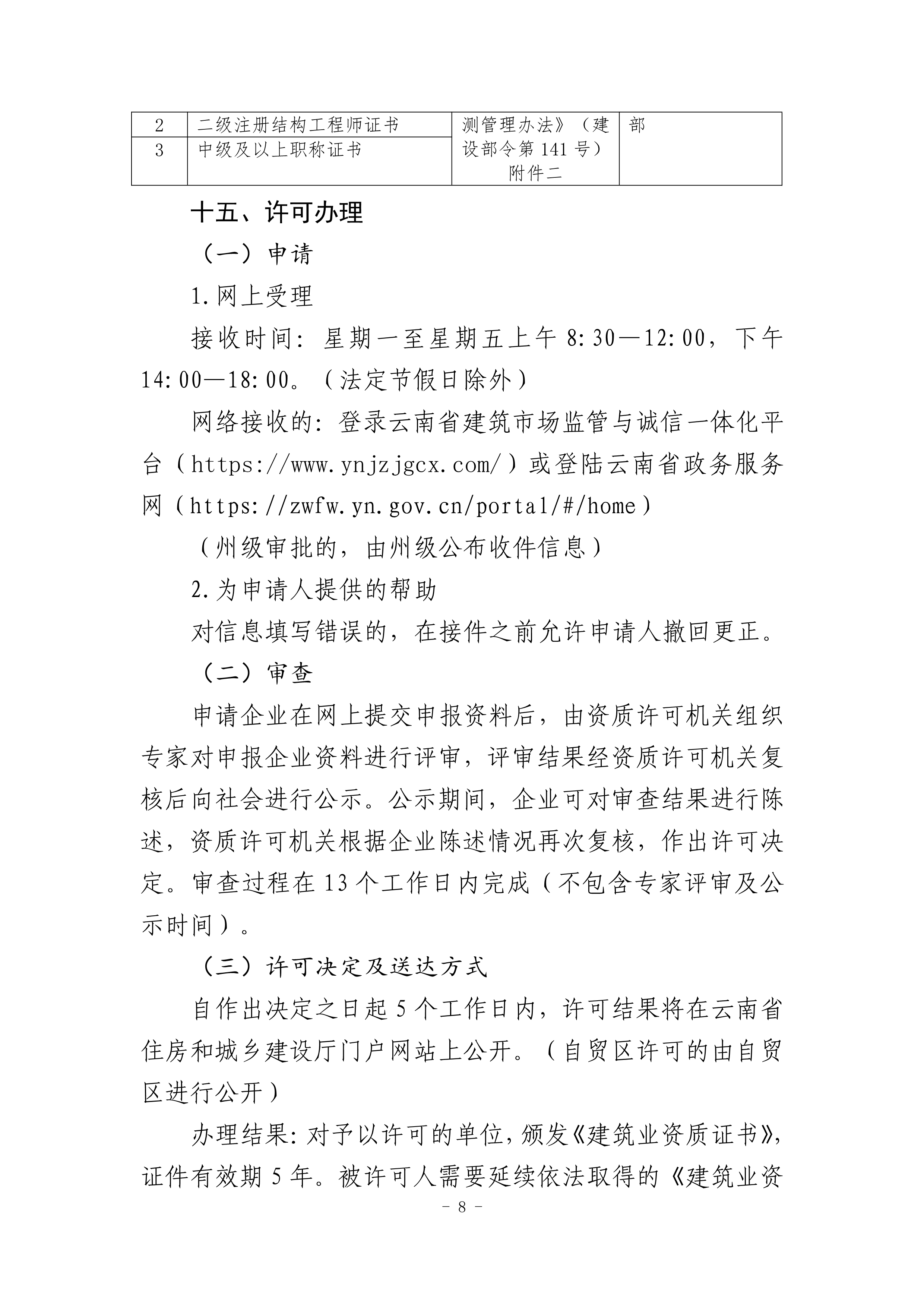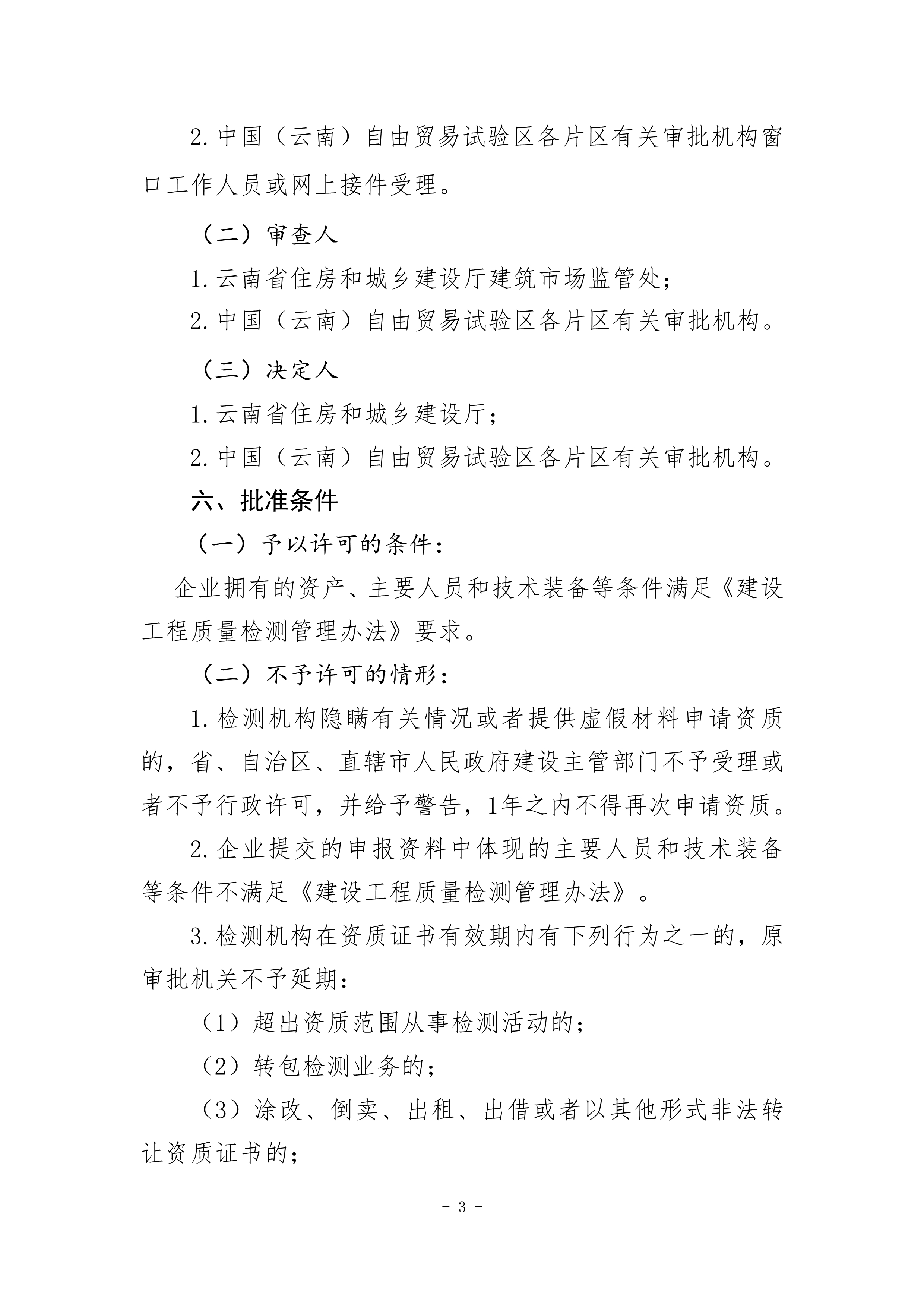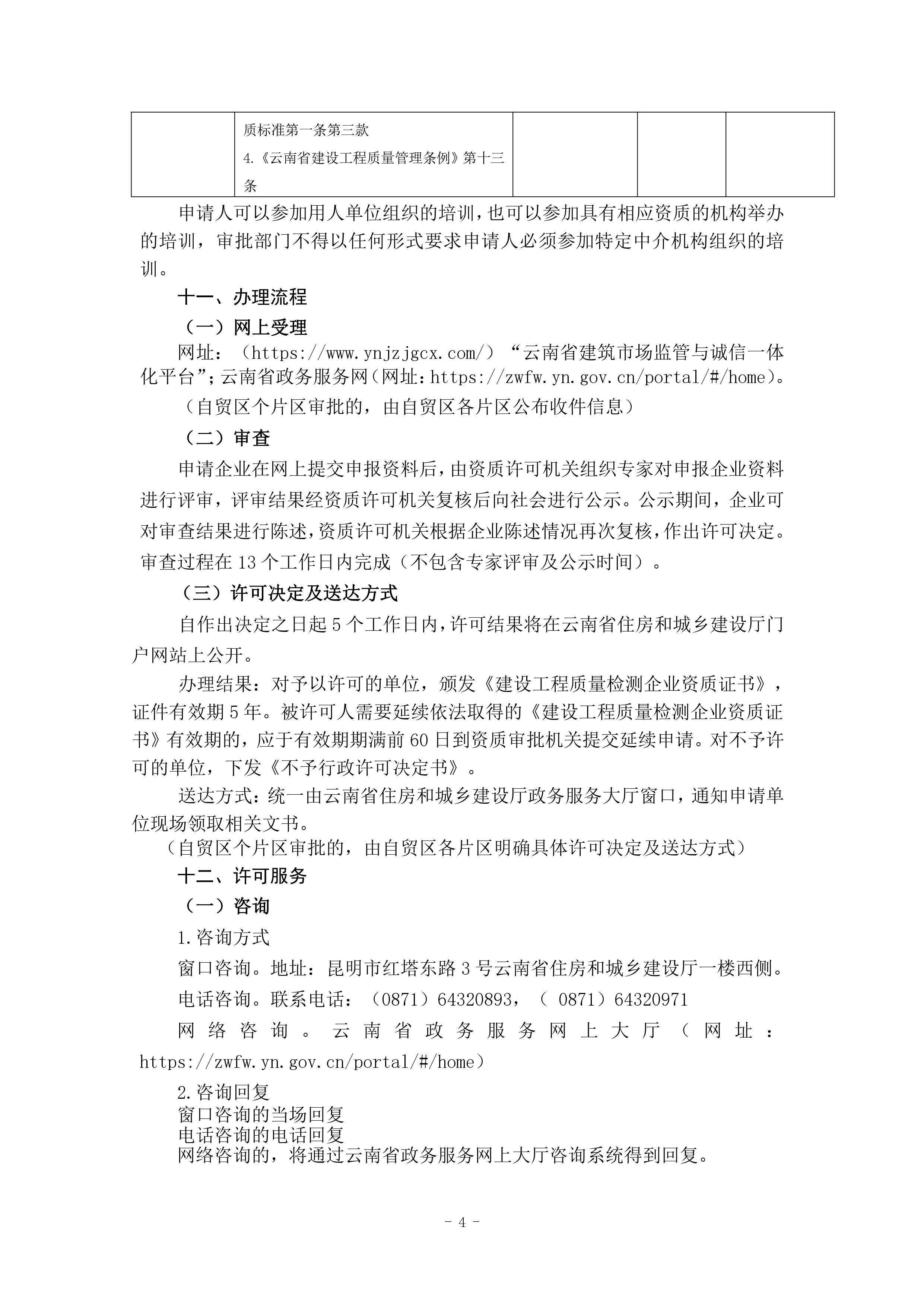 根據(jù)《云南省人民政府關于調整482項涉及省級行政權力事項的決定的通知》(云政發(fā)〔2020〕16 號)、《云南省人民政府關于調整112項涉及州級及以下行政權力事項的決定》(云政發(fā)〔2020〕21號)、《云南省人民政府辦公廳關于公布云南省省級政務服務事項(2020年版) 的通知》(云政辦發(fā)〔2020〕39 號)、《云南省人民政府關于向中國(云南)自由貿易試驗區(qū)各片區(qū)管委會下放第一批省級管理權限的決定》(云政發(fā)〔2020〕34號)等文件精神,省住房城鄉(xiāng)建設廳于2021年1月20日對涉及省級下放自貿區(qū)各片區(qū)的“建筑施工企業(yè)安全生產(chǎn)許可證核發(fā)”等9項政務服務事項辦事指南和業(yè)務手冊進行了編寫或修訂,現(xiàn)將“建設工程質量檢測機構資質核準業(yè)務手冊和辦事指南(完整版)”發(fā)布如下: