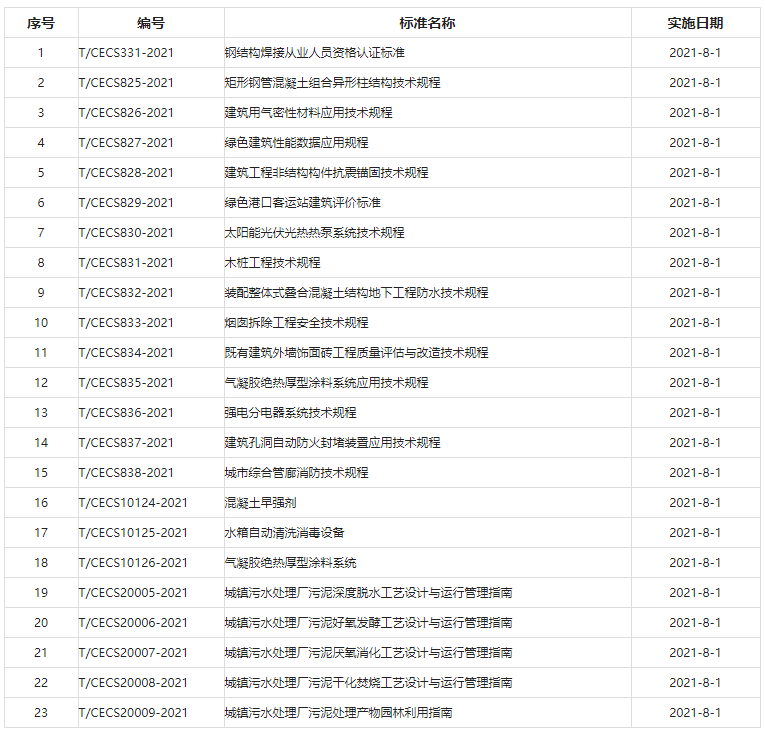 2021年8月開(kāi)始實(shí)施的工程建設(shè)標(biāo)準(zhǔn)