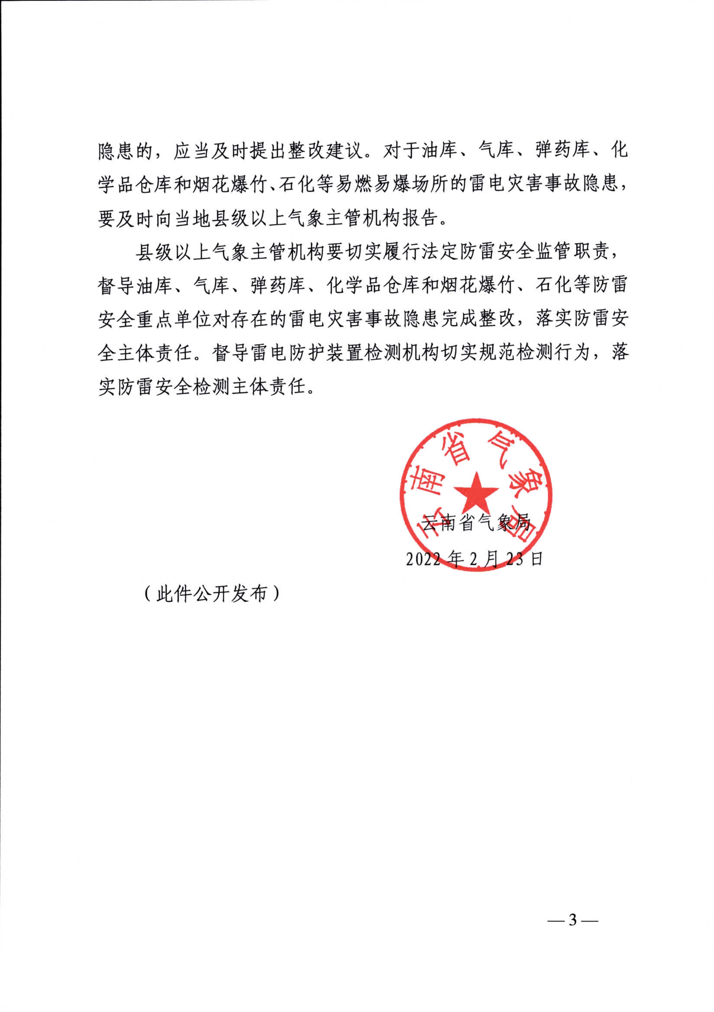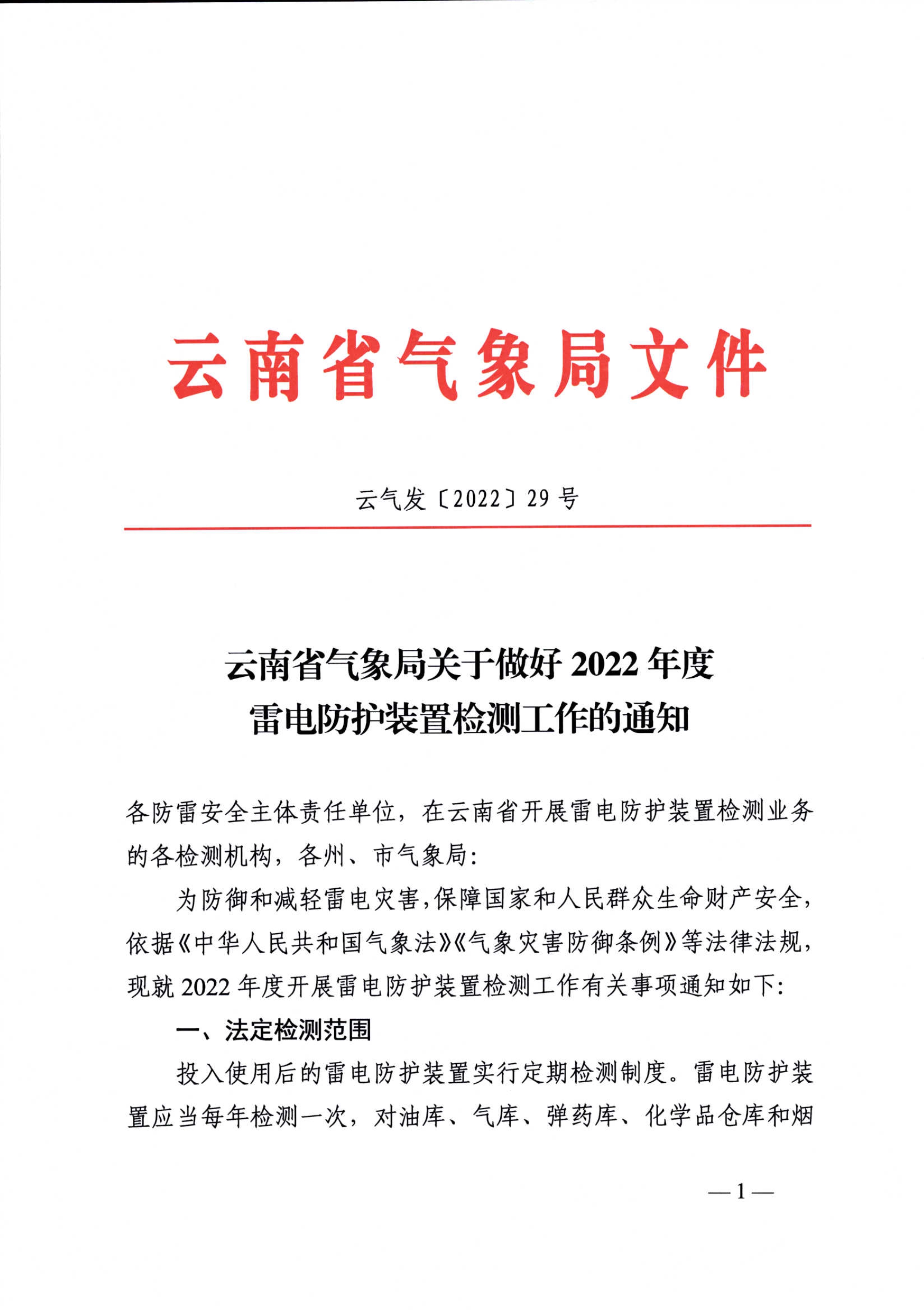 云南省氣象局關(guān)于做好2022年度雷電防護(hù)裝置檢測工作的通知