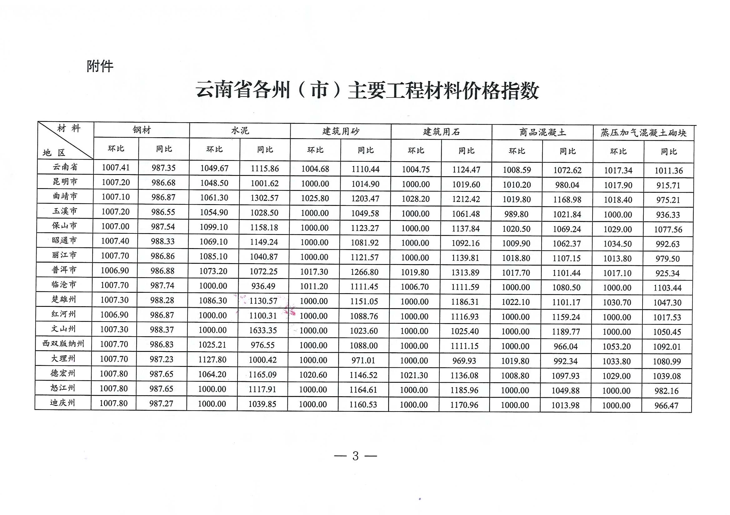 云南省住房和城鄉(xiāng)建設廳關于2022年4月云南省主要工程材料價格波動情況的通報