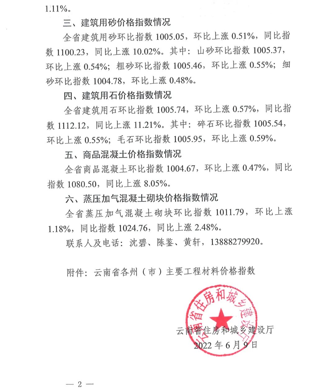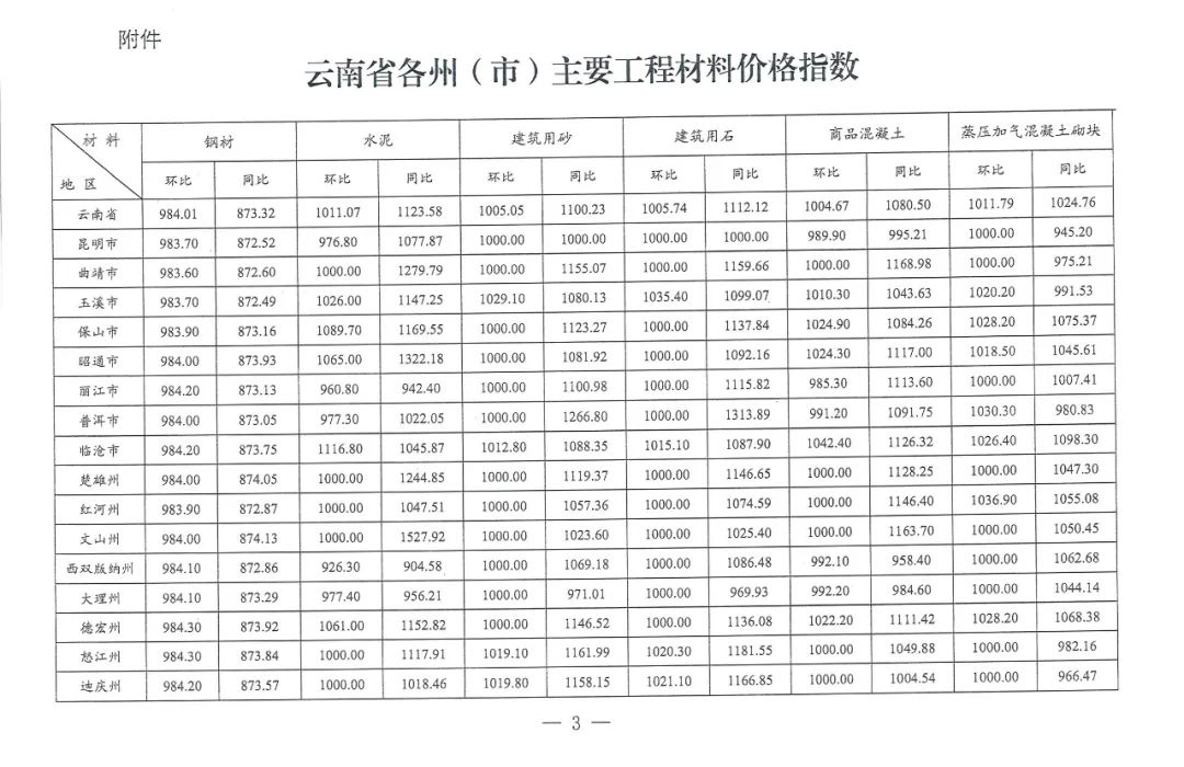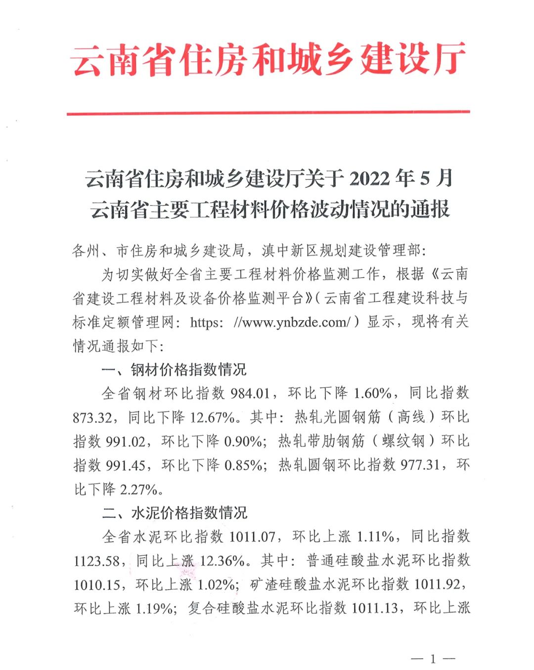 云南省住房和城鄉(xiāng)建設(shè)廳關(guān)于2022年5月云南省主要工程材料價(jià)格波動(dòng)情況的通報(bào)