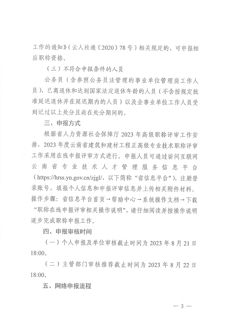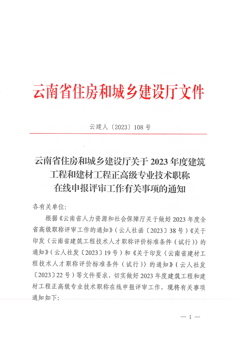 云南省住房和城鄉(xiāng)建設(shè)廳關(guān)于2023年度建筑工程和建材工程正高級(jí)專(zhuān)業(yè)技術(shù)職稱(chēng)在線申報(bào)有關(guān)事項(xiàng)的通知